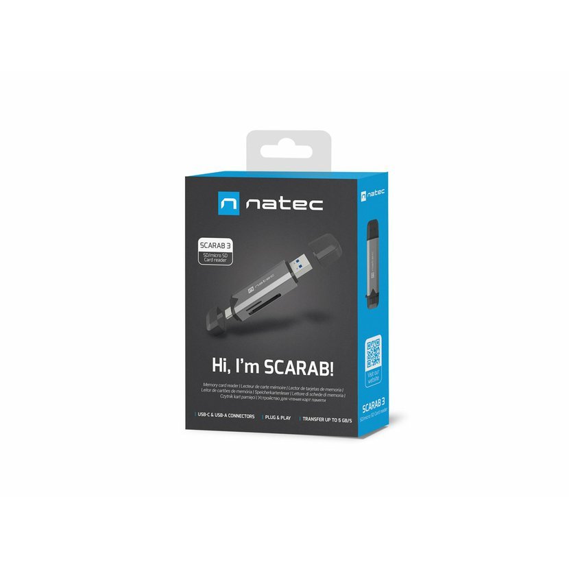 Můžete si být jisti, že Natec Scarab 3 zvládne karty microSD, microSDHC, microSDXC, SD, SDHC, SDXC, T-Flash s maximální kapacitou až 2 TB. A co víc, po připojení zařízení Natec Scarab 3 k zařízením s podporou OTG je prohlížení obsahu paměťové karty snadnější než kdykoli předtím.