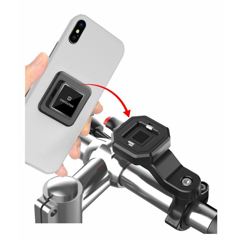 Jedinečný systém uchycení smartphonu k držáku díky rozhraní SWISSTEN EASY LOCK zajistí možnost jednoduché manipulace se smartphonem a i jeho bezpečné připevnění. Pro uvolnění smartphonu ze zámku stačí stlačit červené tlačítko.