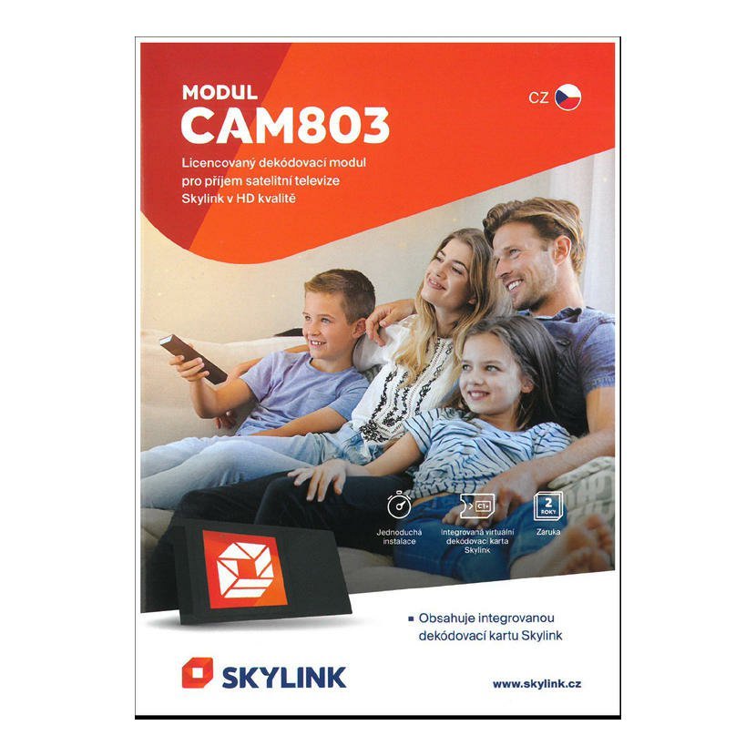 Modul Skylink CAM803 umožňuje příjem televizního vysílání přímo na televizoru se satelitním tunerem bez nutnosti použití dalšího zařízení a dálkového ovladače. Abyste mohli CAM803 používat, váš televizor nebo přijímač musí mít satelitní tuner a slot pro podmíněný přístup, který podporuje CI+ 1.3 nebo CI+ 1.4. Televizory nebo přijímače se slotem CI nejsou podporovány. Instalace CAM803 umí řídit seznam kanálů Skylinku pomocí funkce operátorského profilu. Pokud však váš televizor / satelitní přijímač disponuje funkcí Skylink FastScan, doporučujeme ji nechat aktivní a namísto modulu CAM803 spravovat seznam kanálů ve výchozím stavu. Pokud váš televizor nebo přijímač funkci Skylink FastScan nepodporuje, nechte seznam kanálů spravovat CAM803 ( funkce musí být podporována TV přijímačem ).