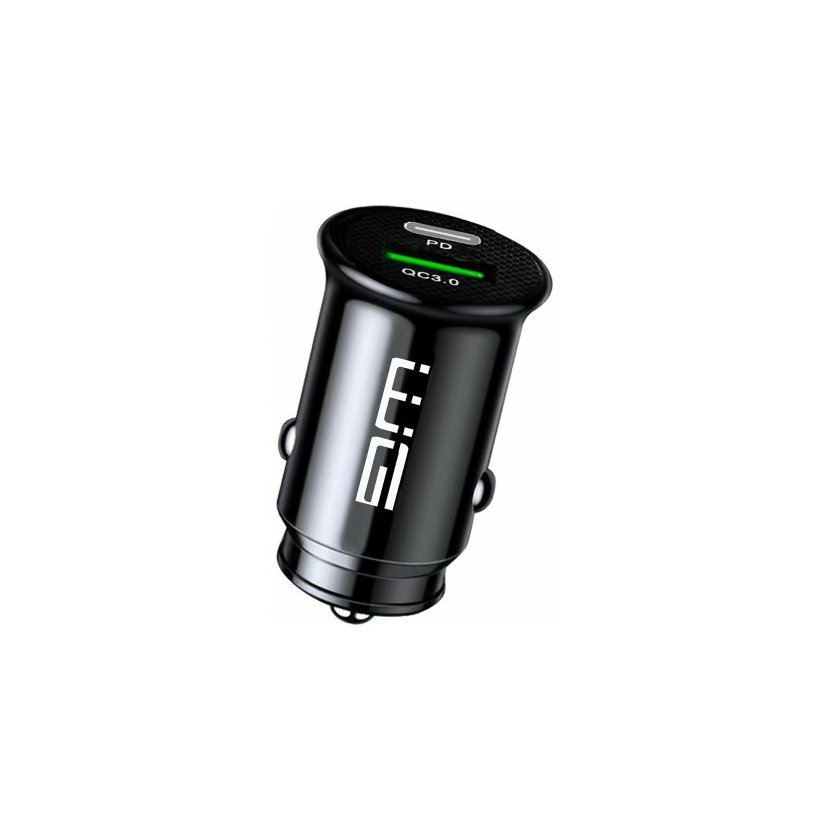 Praktická autonabíječka v lesklém černém provedení s maximálním výstupním proudem 3A disponuje výstupem USB-C port s podporou standardu rychlonabíjení PD 3.0 a výstupem USB-A, který podporuje rychlonabíjení díky standardu QC 3.0. Vrchní část nabíječky je provedena v designu carbonu. Nabíječka do auta v kompaktním provedení je vyrobeno z pevného plastu.